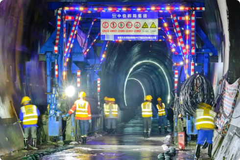 在项目建设过程中,建设团队以“技术先行、智能施工”为核心,采用TSP超前地质预报系统与地质雷达技术,累计完成围岩监测200余次,提前预警风险段47处,制定针对性施工方案;采用聚能爆破技术,配合全断面法、三台阶临时仰拱法,日均掌子面进尺由7米提升8米;投入液压仰拱栈桥、智能衬砌台车等20余台先进设备,研发锁脚锚杆角度定位卡具等10项工艺方法,推进机械化、信息化施工,施工效率提升约20%。