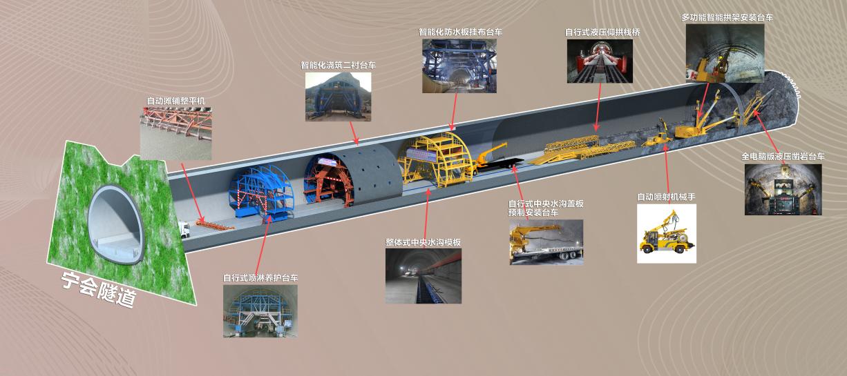面对施工痛点、难点,项目团队坚持“科技兴安、智能建造”,在宁攀高速全线率先推行“成套智能化设备”应用,从初期隧道每月掘进不足60米的“人工慢跑”,到引进全电脑版三臂凿岩台车、智能拱架安装台车、智能化二衬台车等成套设备,同时自主研创多项大机配套施工技术,将单循环钻孔时间从6小时大幅缩减至2.5小时,实现在Ⅳ、Ⅴ级围岩中单月独头掘进最高超200米,达到国内同类隧道施工领先水平,展现令人惊叹的“川隧速度”。同时,项目深度融合集团自主研发的“川隧大模型”,为隧道施工安装“数字大脑”,实现了施工安全、质量、进度的实时可视化、智能化管控,打通了从“人控”到“智控”的“最后一公里”。项目累计形成核心论文12篇,累计获得省级工法3项、发明专利2项、实用新型专利17项、省级QC成果3项、国家级及省级科技创新奖3项,打造了超特长隧道绿色智能建造的行业新标杆。