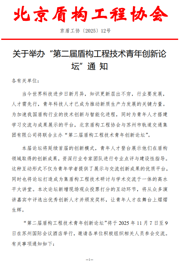摘 要:“第二届盾构工程技术青年创新论坛”将于2025年11月7日至9日在苏州国际会议酒店举行,邀请各单位积极组织相关人员参会交流。