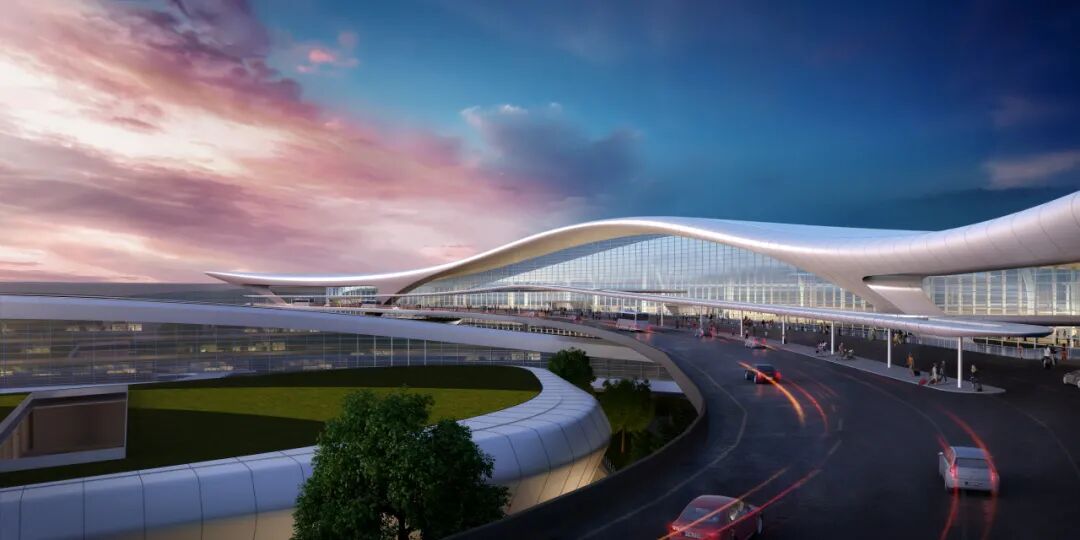 ▲浦东机场T3航站楼建筑外形呈现“翱翔”姿态(效果图)