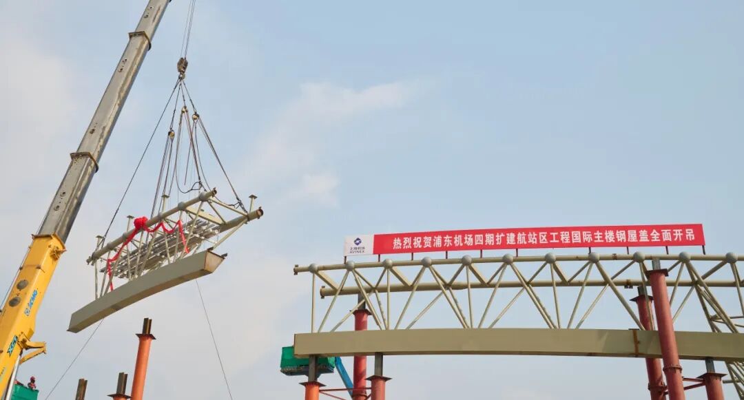 据上海机场集团消息,浦东机场四期扩建工程航站区工程国际主楼钢屋盖全面开吊,T3航站区工程正式转入钢结构安装的核心攻坚阶段。详见↓