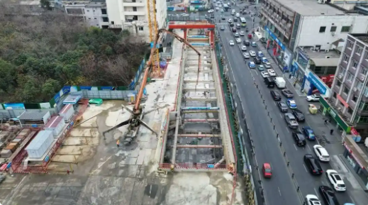 据介绍,文庙广场站位于德阳市中心繁华地段,周边人流车流密集、建筑物林立,同时地质条件复杂,属于高富水卵石地层,犹如在“水泡着的碎石堆”里施工,难度较大。为应对上述挑战,建设团队与设计、施工、监测等单位密切协作,针对每栋邻近老楼制定“一楼一策”方案,提前开展勘测与注浆加固,并实施24小时自动化监测。同时,在车站基坑围护桩外侧增设素混凝土桩,有效防止涌水涌砂,保障施工安全。