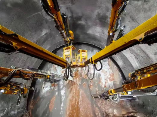 施工中,双台凿岩台车同步作业,炮眼施工效率大幅提升;拱架遥控安装、湿喷台车双机协同,既压缩工序耗时,又降低安全风险、提升施工质量,实现了隧道施工从人工主导向机械主导的高效转型。