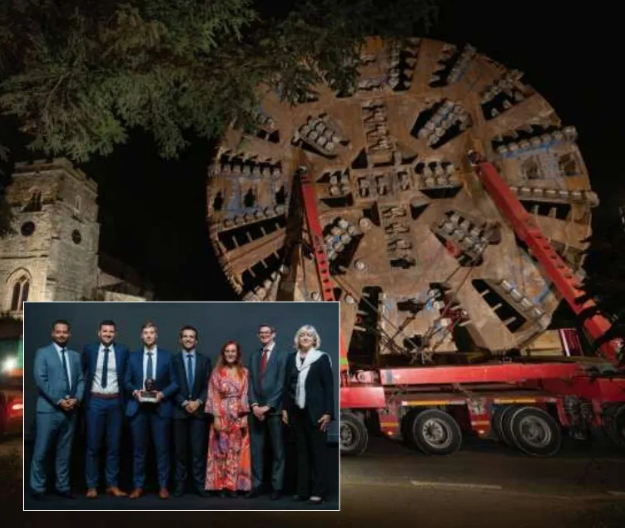 英国HS2高铁项目中,两条双线高速铁路隧道长1600m,内径8.8m(外径10m),直接穿越长伊钦顿森林保护区下方。该项目古森林段的掘进工程由单台TBM完成双线隧道的掘进。该TBM在七个月内首次贯通后,提前四个月返回始发井,完成了平行隧道的掘进。为实现TBM的调头,TBM的龙门架及螺旋机回撤至始发井实现了快速转移,而刀盘与盾构体则采用公路运输,最大限度缩短了TBM再度始发的时间。