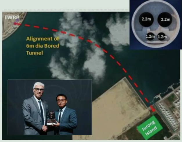 工程建设了一条长1.6km、直径6m的海底隧道,成为了承载四条新饮水供应管道的最经济方案——其中两条直径2.2m,另两条直径1.2m。该隧道工程总造价8100万欧元,其中隧道土木工程费用达5700万欧元。在56m深处施工过程中,项目团队面临多个重大的工程挑战,包括在邻近直径700 mm的高压输气管线的区域进行TBM掘进。