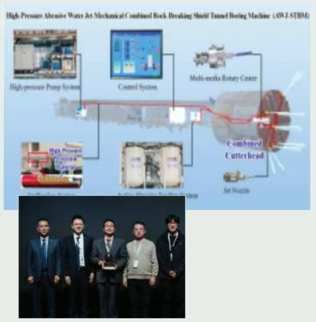 该技术将高压水射流技术与隧道掘进机(TBM)的岩石破碎功能相结合,克服了TBM机械化掘进在极端坚硬岩层中适应性差的固有缺陷。水射流先诱导初始裂隙,再由后续机械刀具实施二次破碎。该创新技术还能降低刀具磨损,提升TBM掘进效率。虽然水射流与机械混合掘进法早已有所探索,但山东大学团队通过在高压水射流中添加磨料颗粒,显著提升了切割性能。脉冲磨料射流技术的引入使切削深度增加,岩体破坏程度增强,在应对极端坚硬岩层时实现了技术创新的最大化。