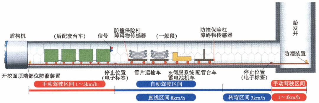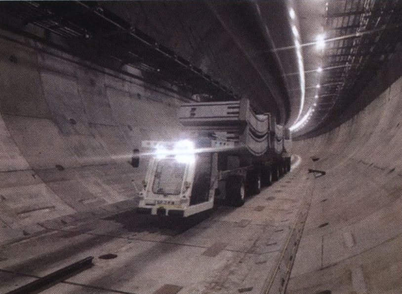 长距离施工的洞内物料运输往返运行时间较长,需要根据隧道总长度和工序时间制定施工计划,包括运输方法和运输速度。其中,有轨运输方式还需要根据需求设置错车点或采用复线轨道。另外,大直径隧道能够确保充分的洞内运输空间,因此也有采用运行速度更快的胶轮车运输物料。