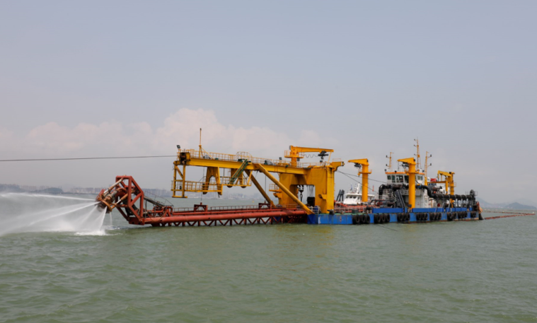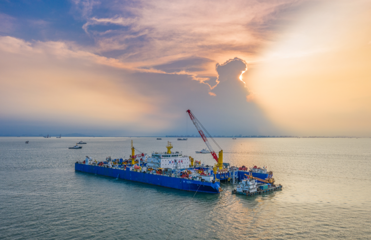深中通道海底隧道位于珠江口,水文泥沙复杂、基槽回淤强度大,研发应用了“深海吸尘器”——专用清淤船。