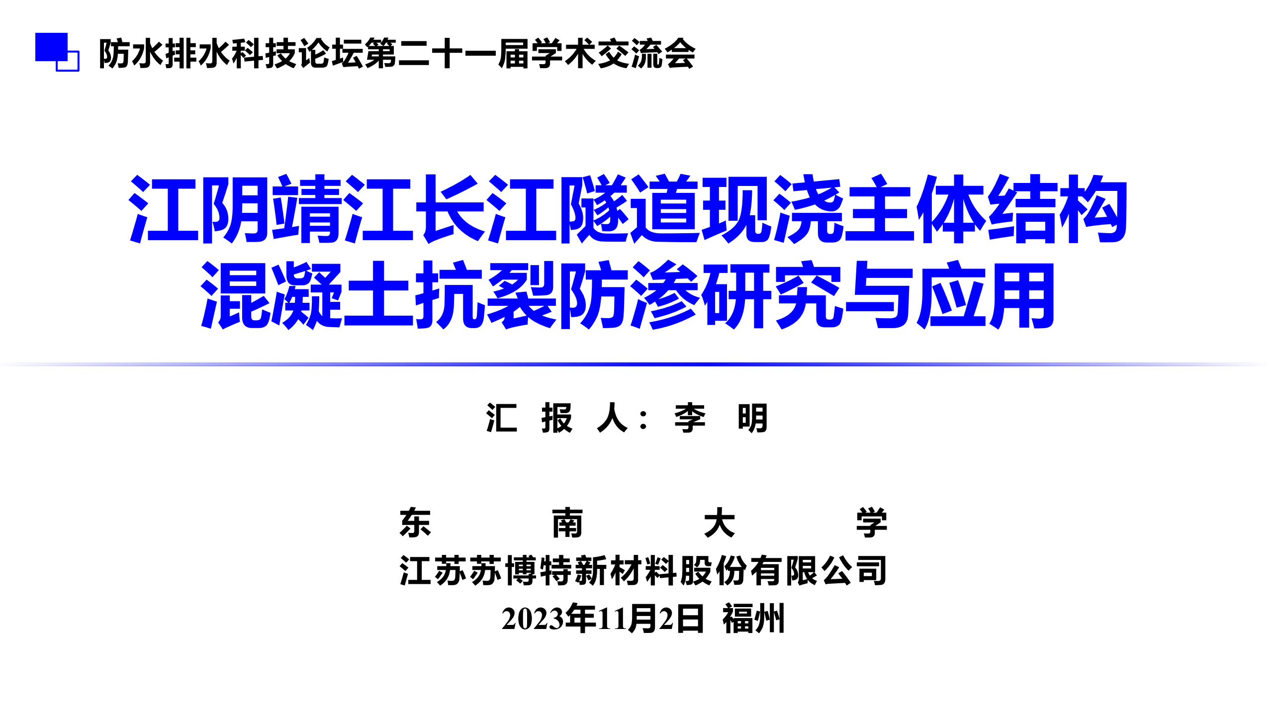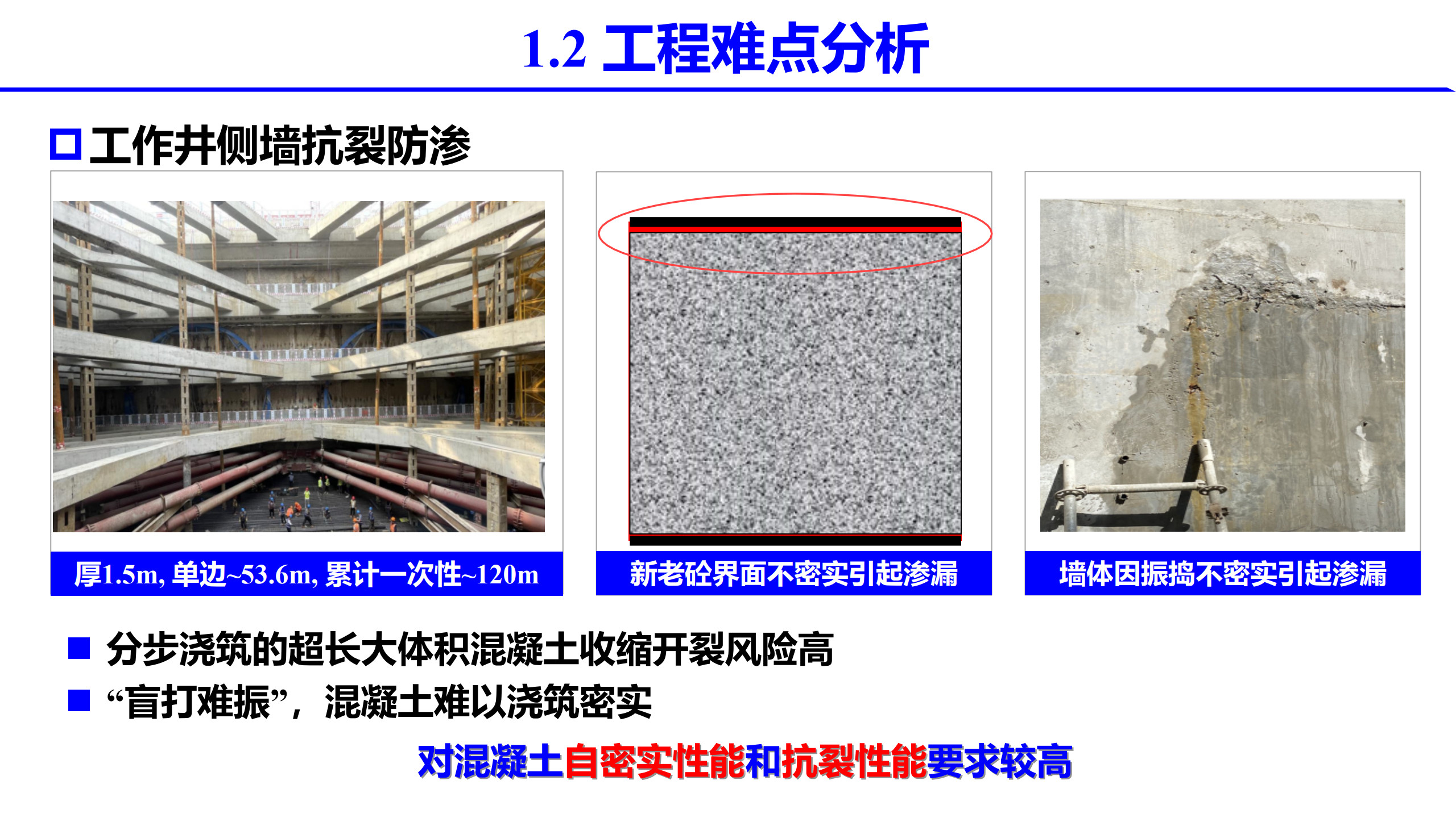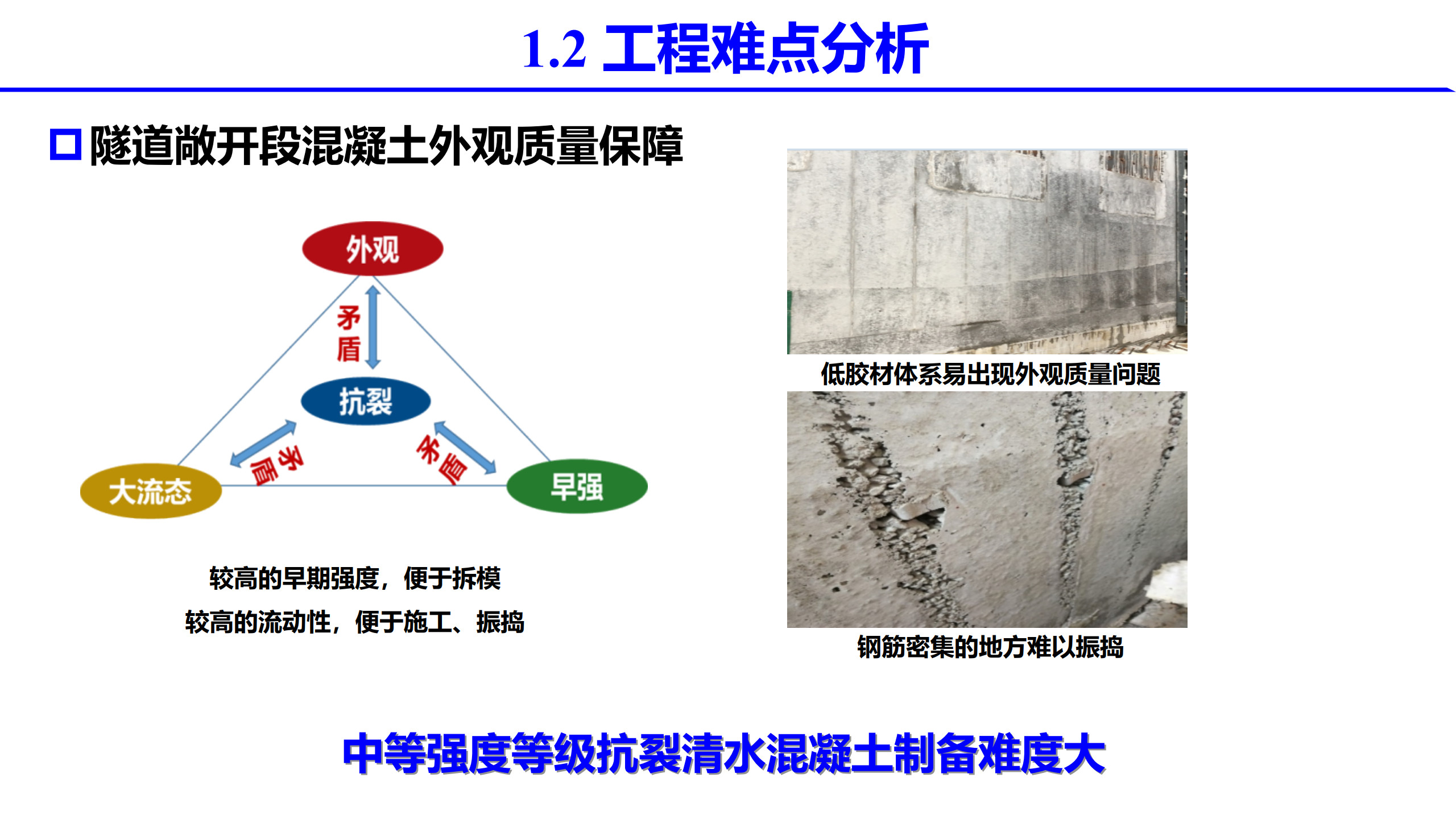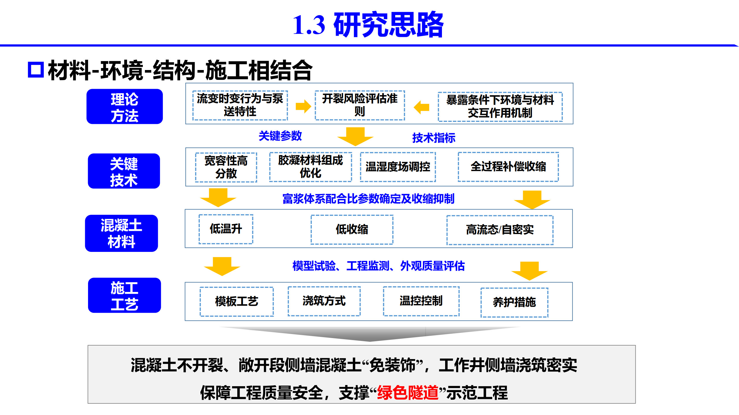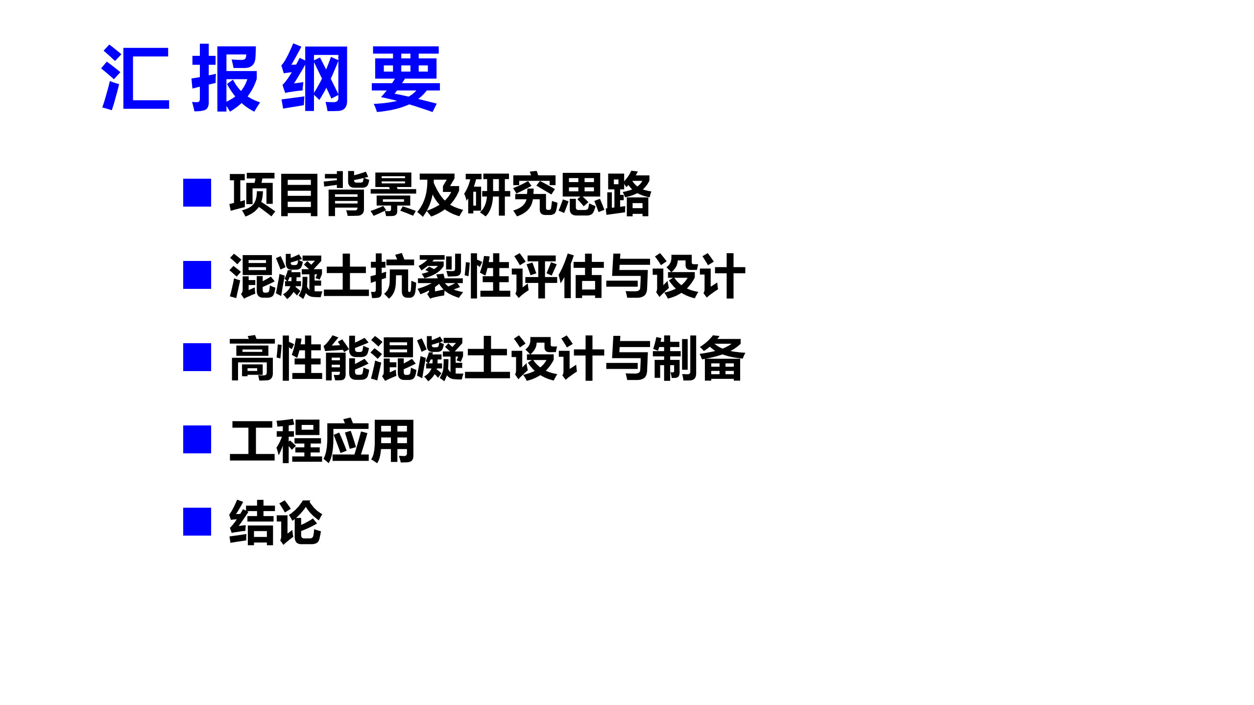报告介绍了项目背景及研究思路,混凝土抗裂性评估与设计,高性能混凝土设计与制备,工程应用和结论。