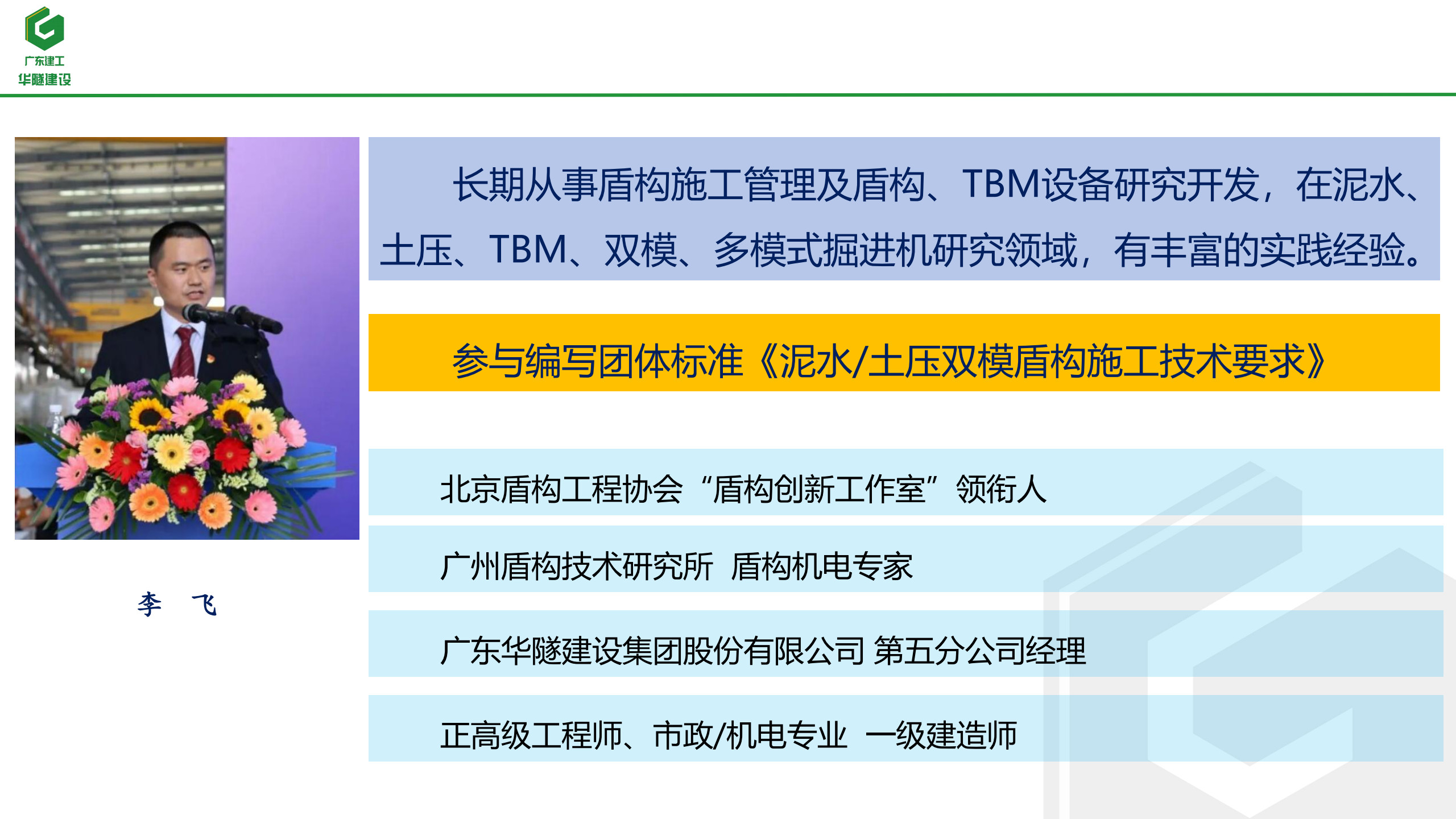 主讲人: 广东华隧建设集团股份有限公司正高级工程师 李飞