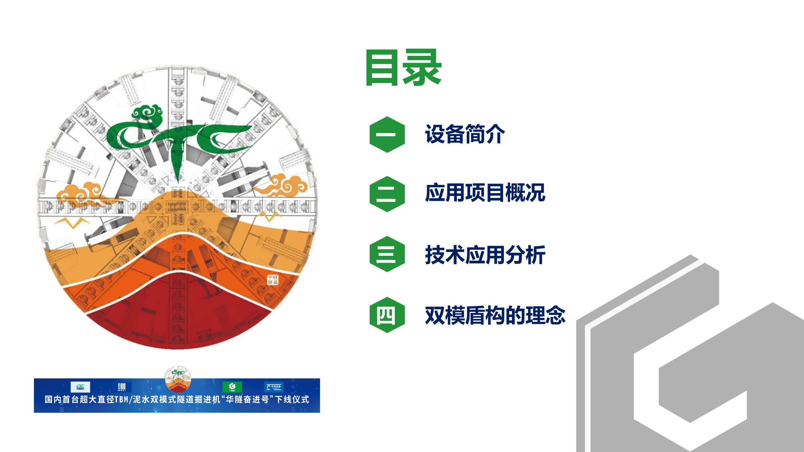 报告介绍了设备简介,应用项目概况,技术应用分析和双模盾构的理念。