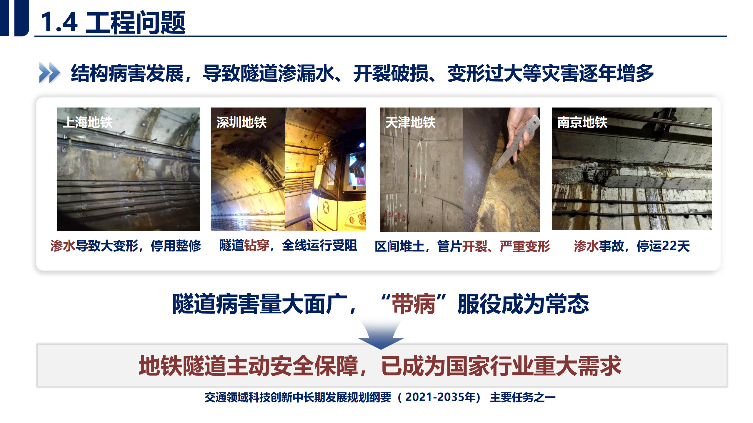报告介绍了结构病害现状,病害快速检测技术,病害快速检测装备研发和结构服役性能评价。