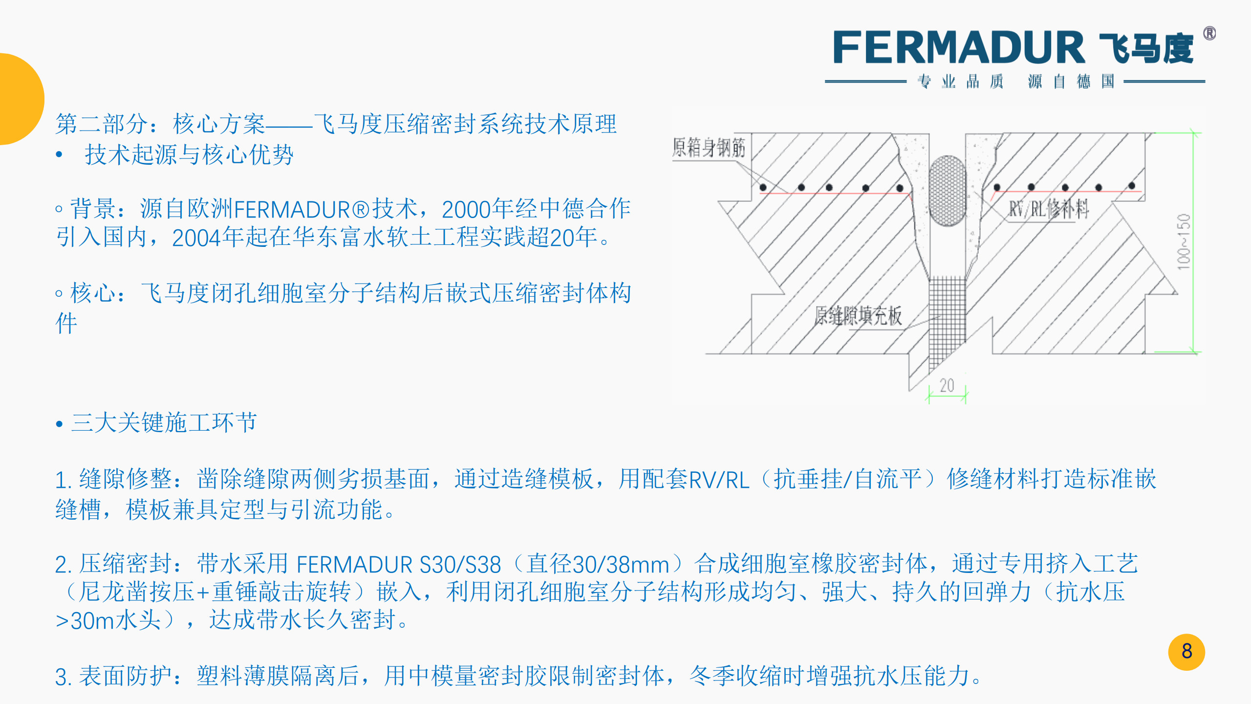 报告介绍了工程痛点,核心方案,胶圈灌浆深化应用,密封材料性能,组合型式与案例验证和未来展望与技术价值。